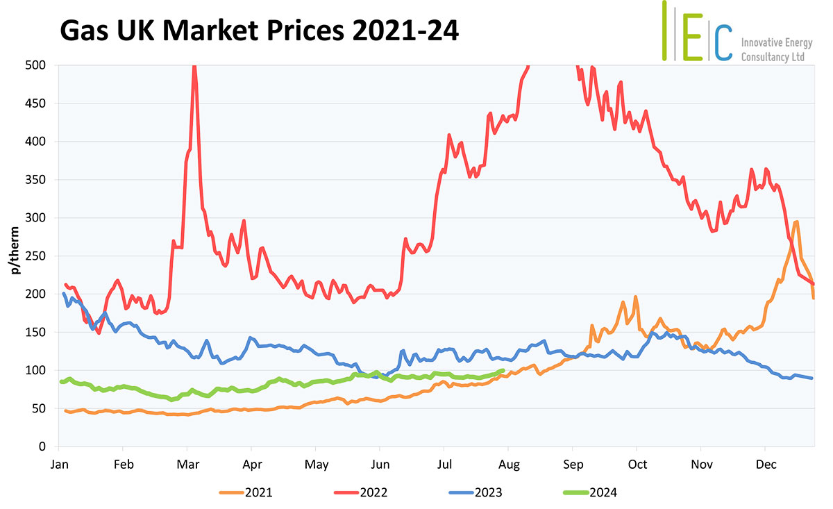 After a rise through May, the markets remained supportive but stable across June and July. Despite brief periods of above average temperatures, the UK’s summer 2024 has been milder than historical averages, reducing energy demands for cooling requirements. The UK and European supply has, as expected, been mixed, due to the ongoing maintenance season. However, globally there have been a few shock interruptions, which have put short-term pressures on the markets.