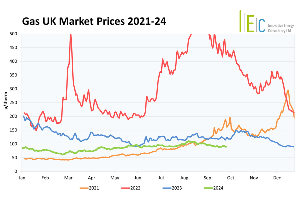 The UK energy market continued a bearish trend from August’s close and through September, with the maintenance season coming to an end and gas storage injections remaining strong. This was enough to counter the upward pressure concerns on future supply, as geopolitical tensions continue to exacerbate.